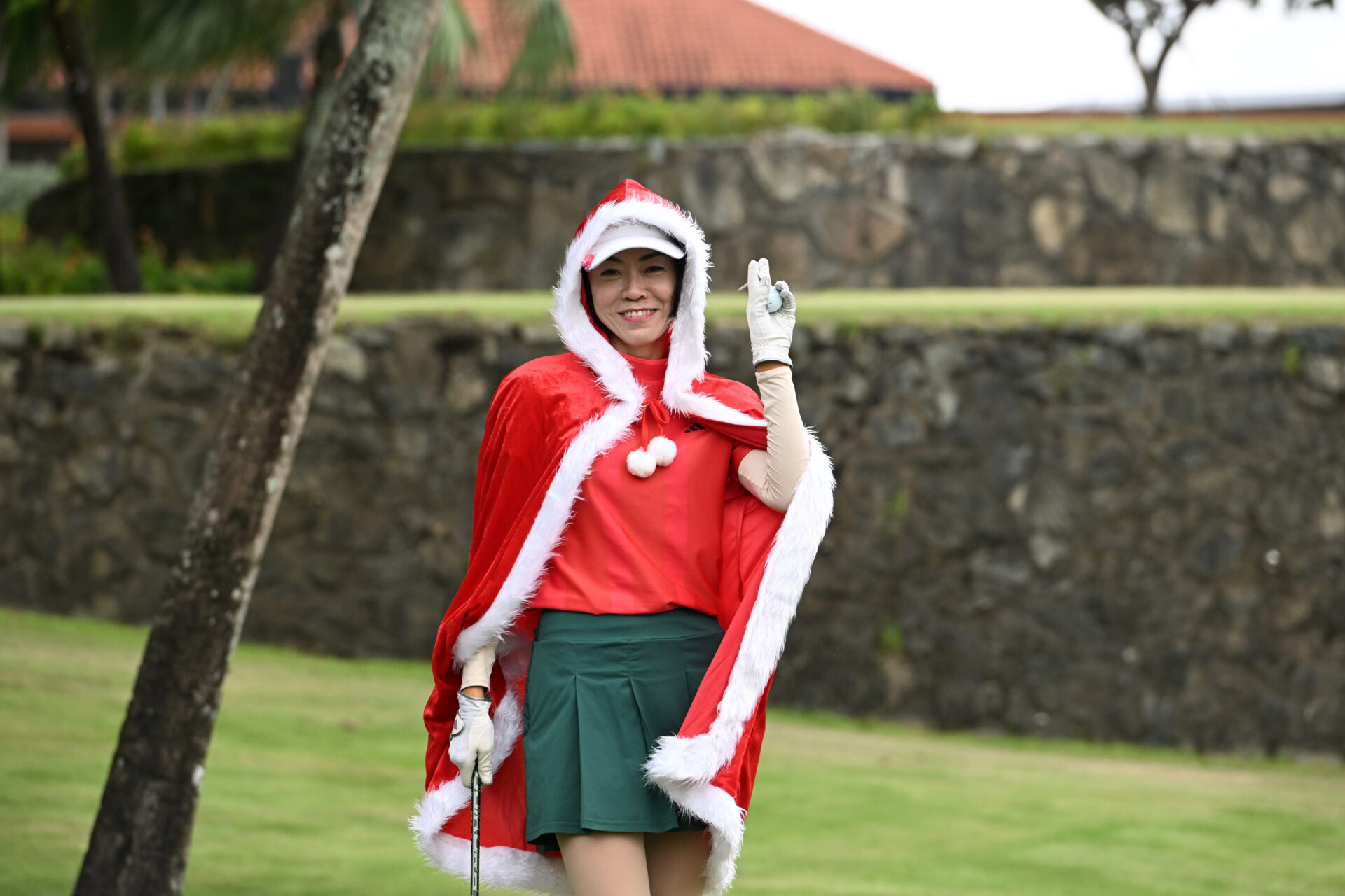 Red and green were the dominant colours as clones of Santa waddled around the course, with golfers attired in clothing that signified the yuletide season. Buggies adorned in lacy Christmas apparel and costumes dotted the expansive course.