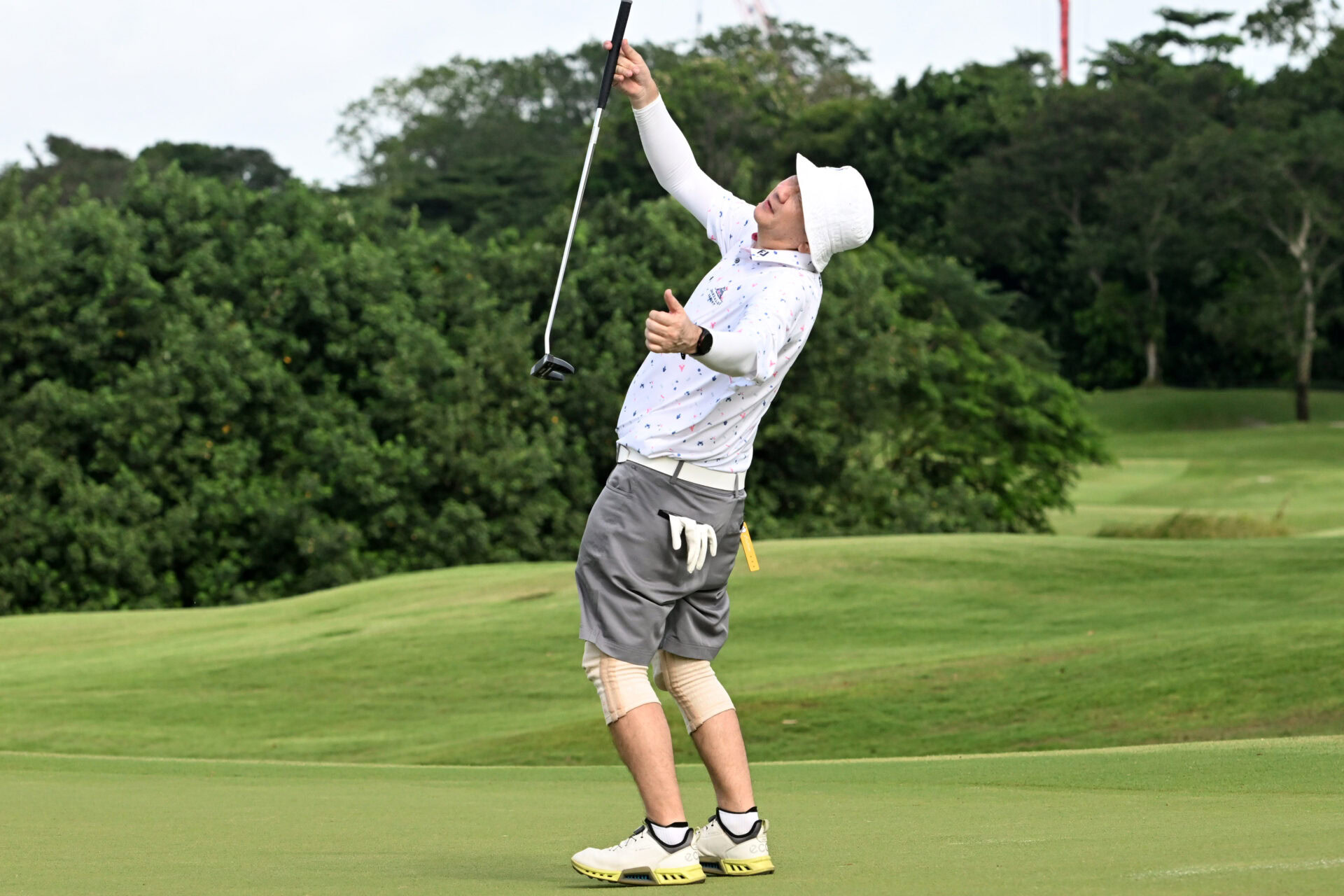 Earlier, on a perfect day for golf, 92 players enjoyed themselves with a fun round even though the challenging Tampines Course tamed many of them.