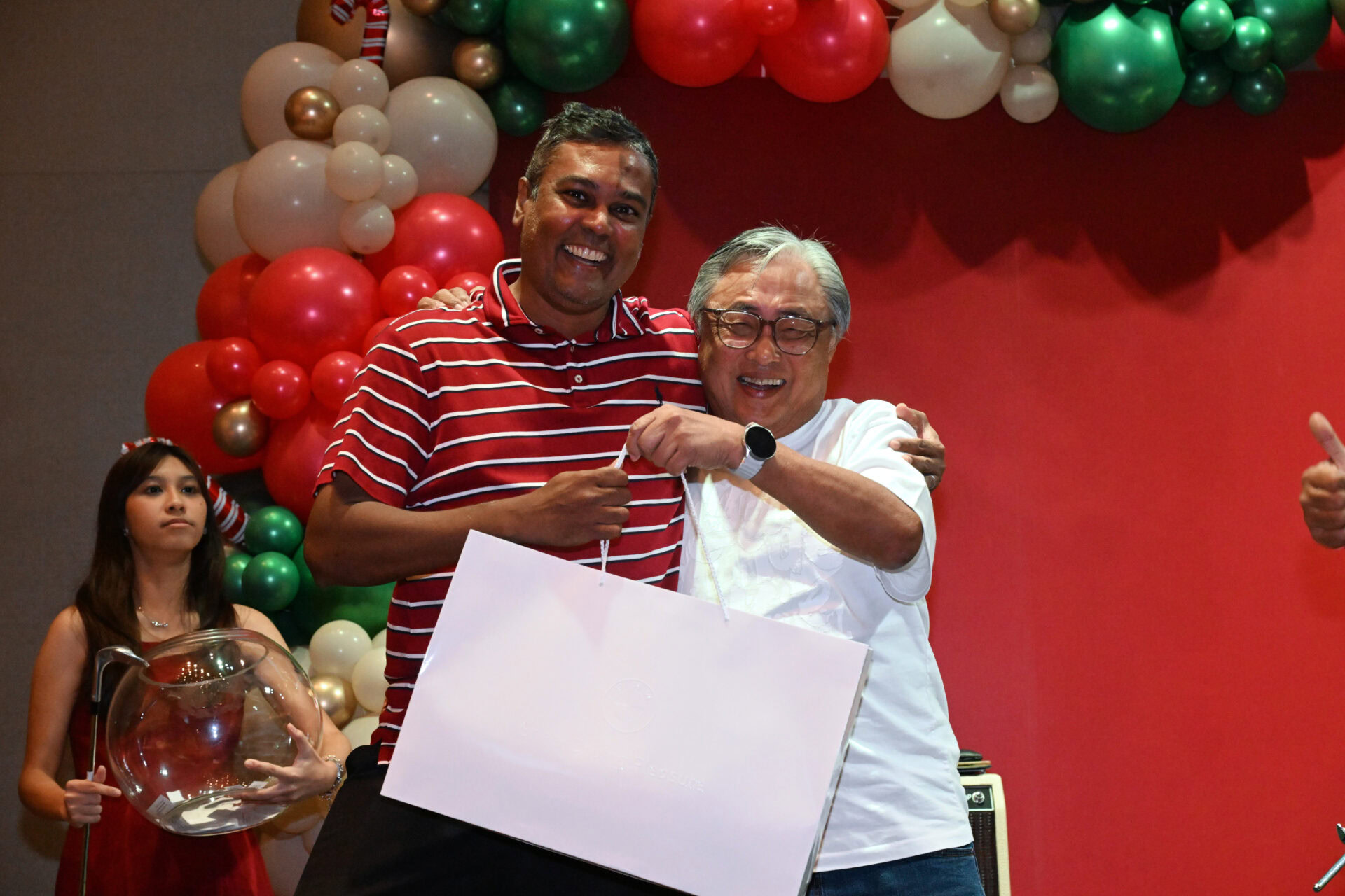 The ever charismatic and energetic emcee Ross Sarpani put the dots together with his easy-going manners and his game segment Christmas Bingo brought about a touch of twist that eventually saw all tables each winning a bottle of wine.