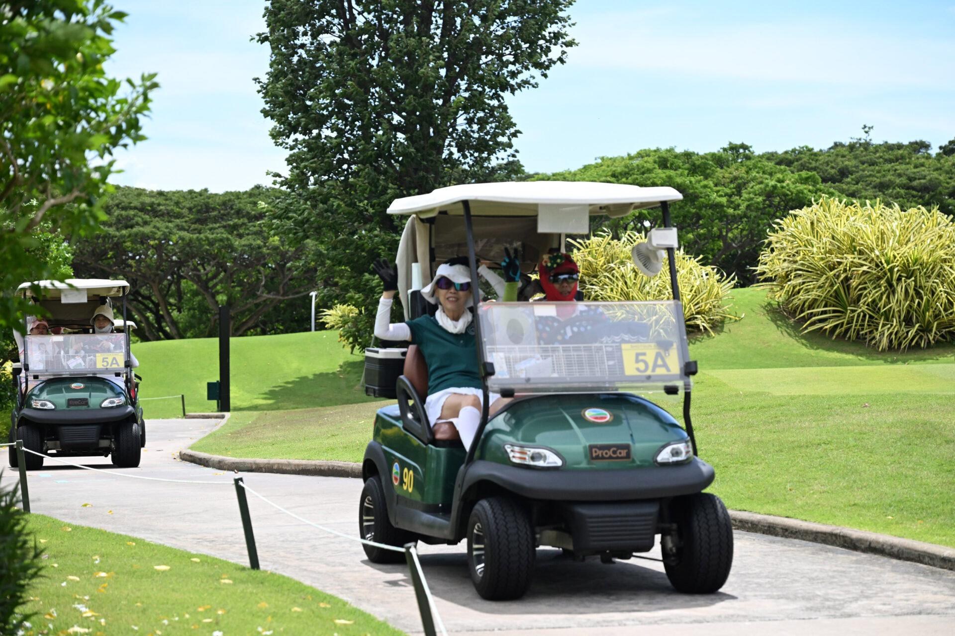 Red and green were the dominant colours as clones of Santa waddled around the course, with golfers attired in clothing that signified the yuletide season. Buggies adorned in lacy Christmas apparel and costumes dotted the expansive course.