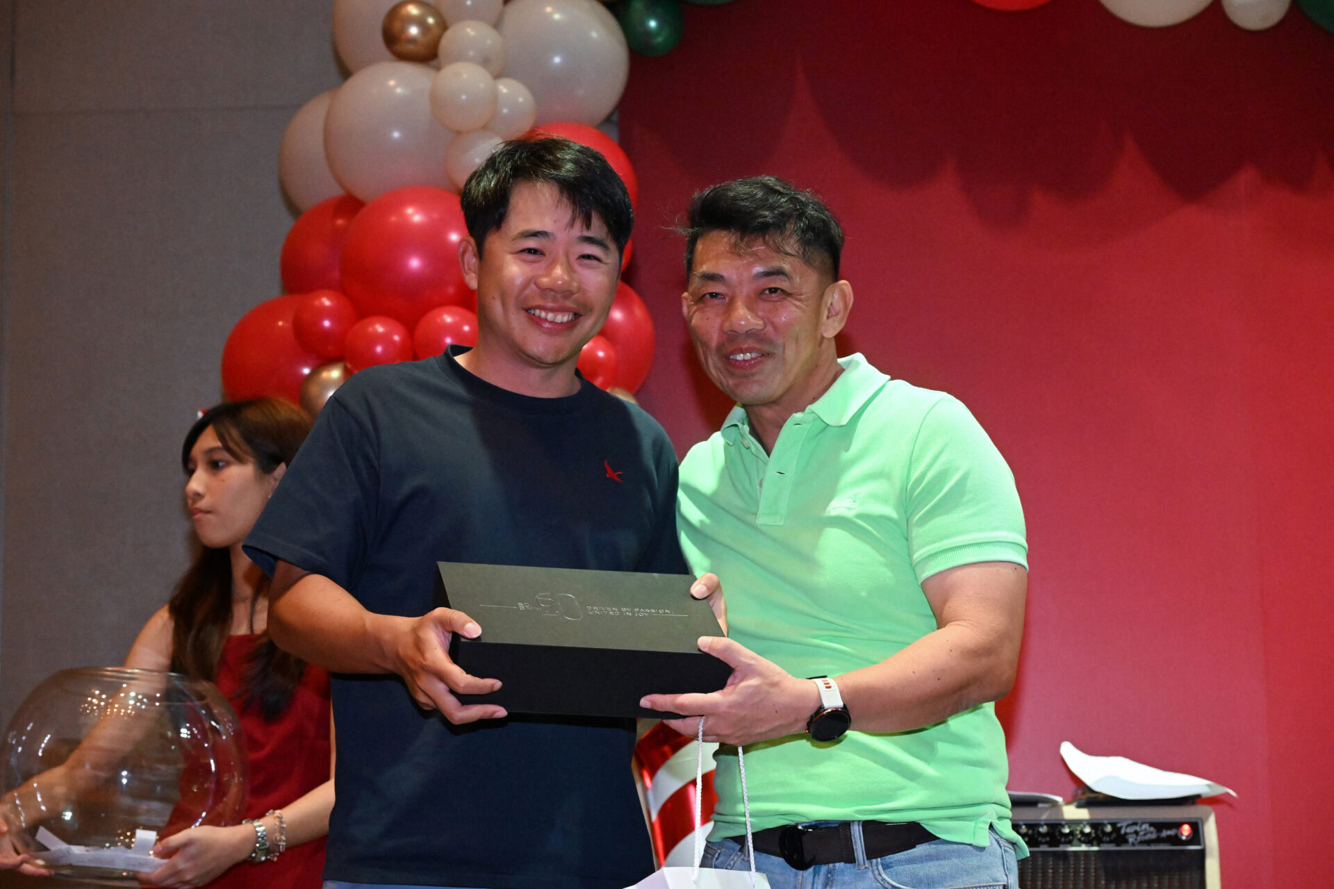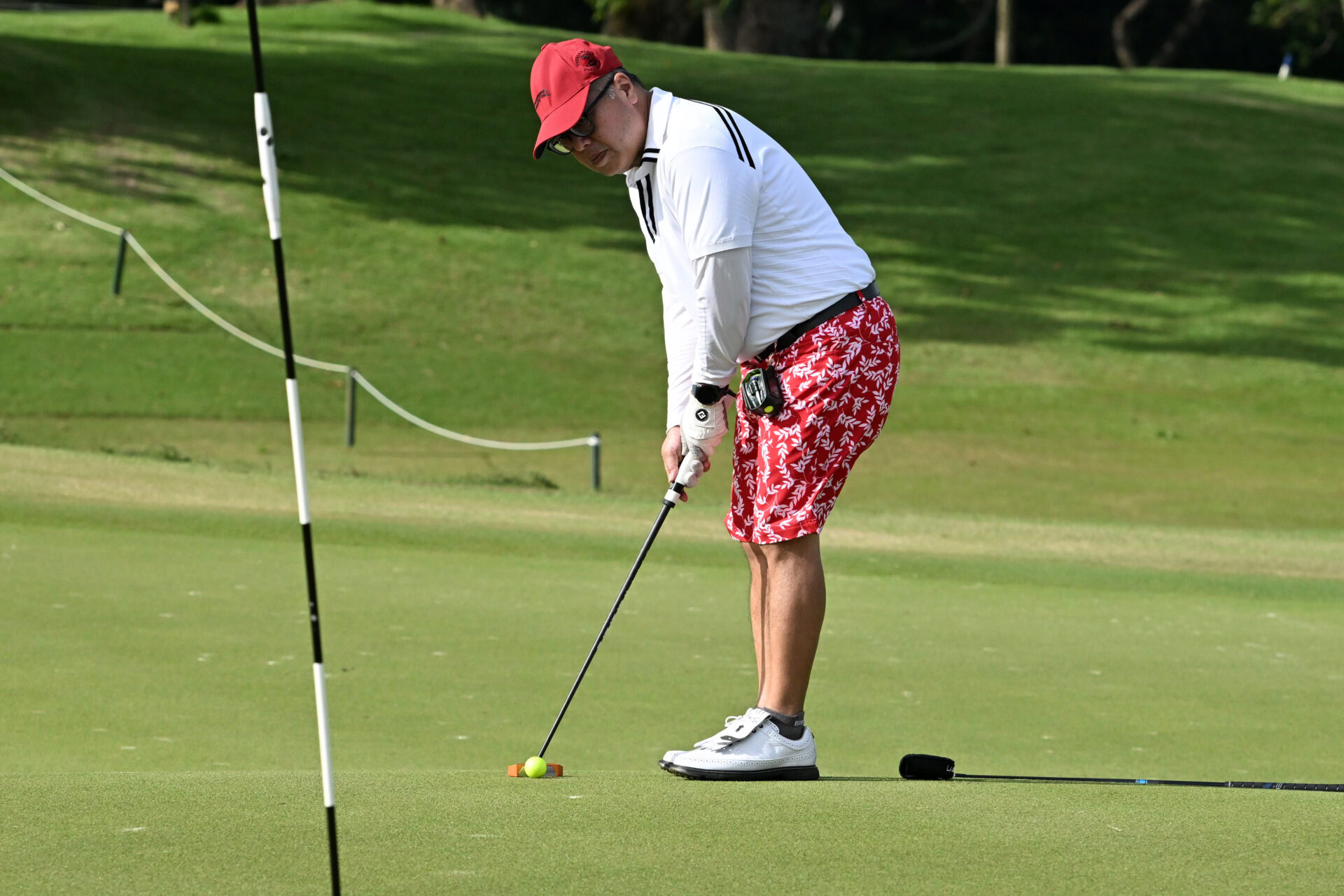 Earlier, on a perfect day for golf, 92 players enjoyed themselves with a fun round even though the challenging Tampines Course tamed many of them.