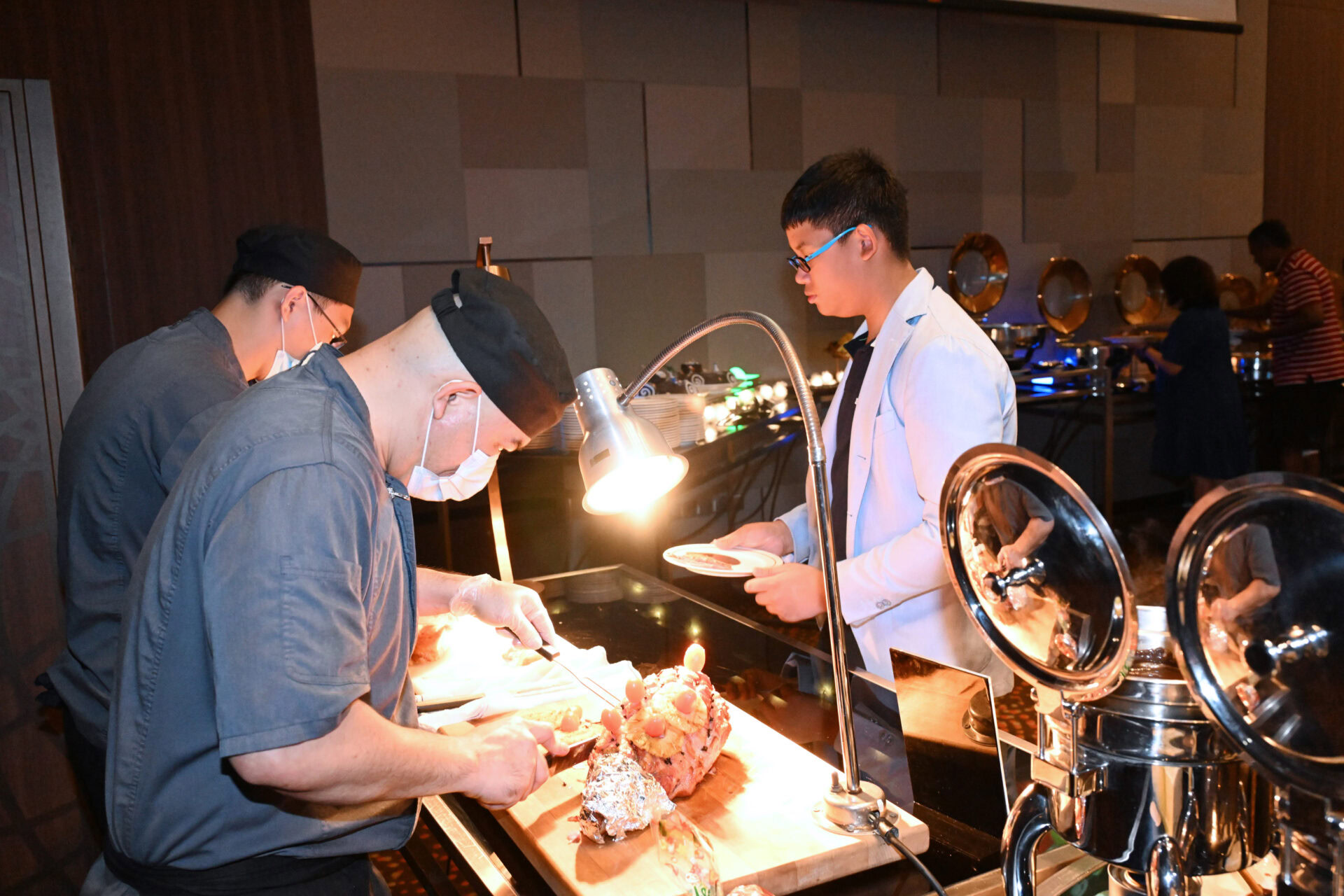 The dinner menu was “out of this world”, and the sumptuous spread of roasted turkey breast and bone-in ham at the carving station drew long queues of diners. The laksa at the Live Station and other festive dishes whetted the crowd’s appetites, while the chocolate log cake provided a perfect sweet ending.
