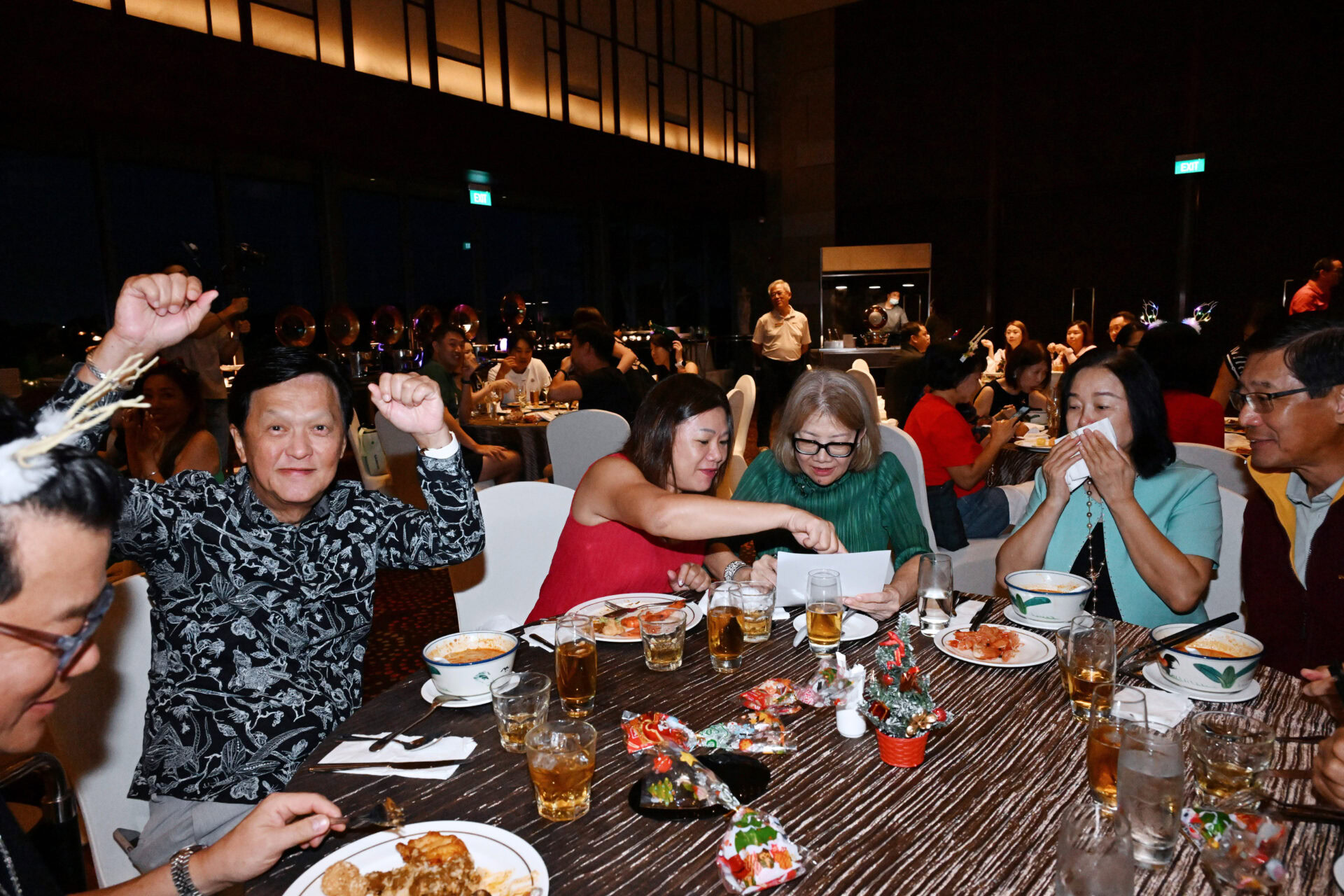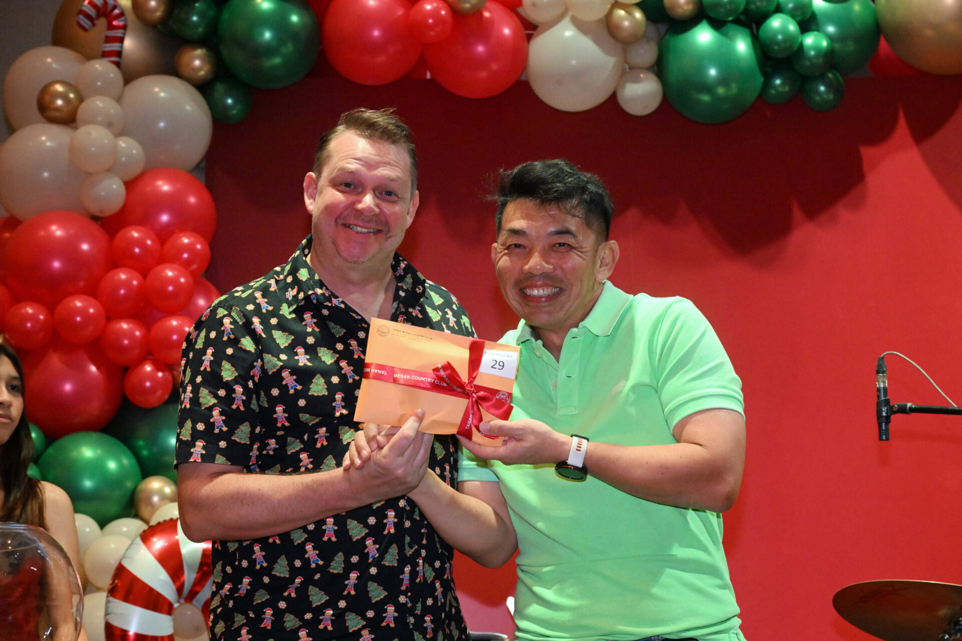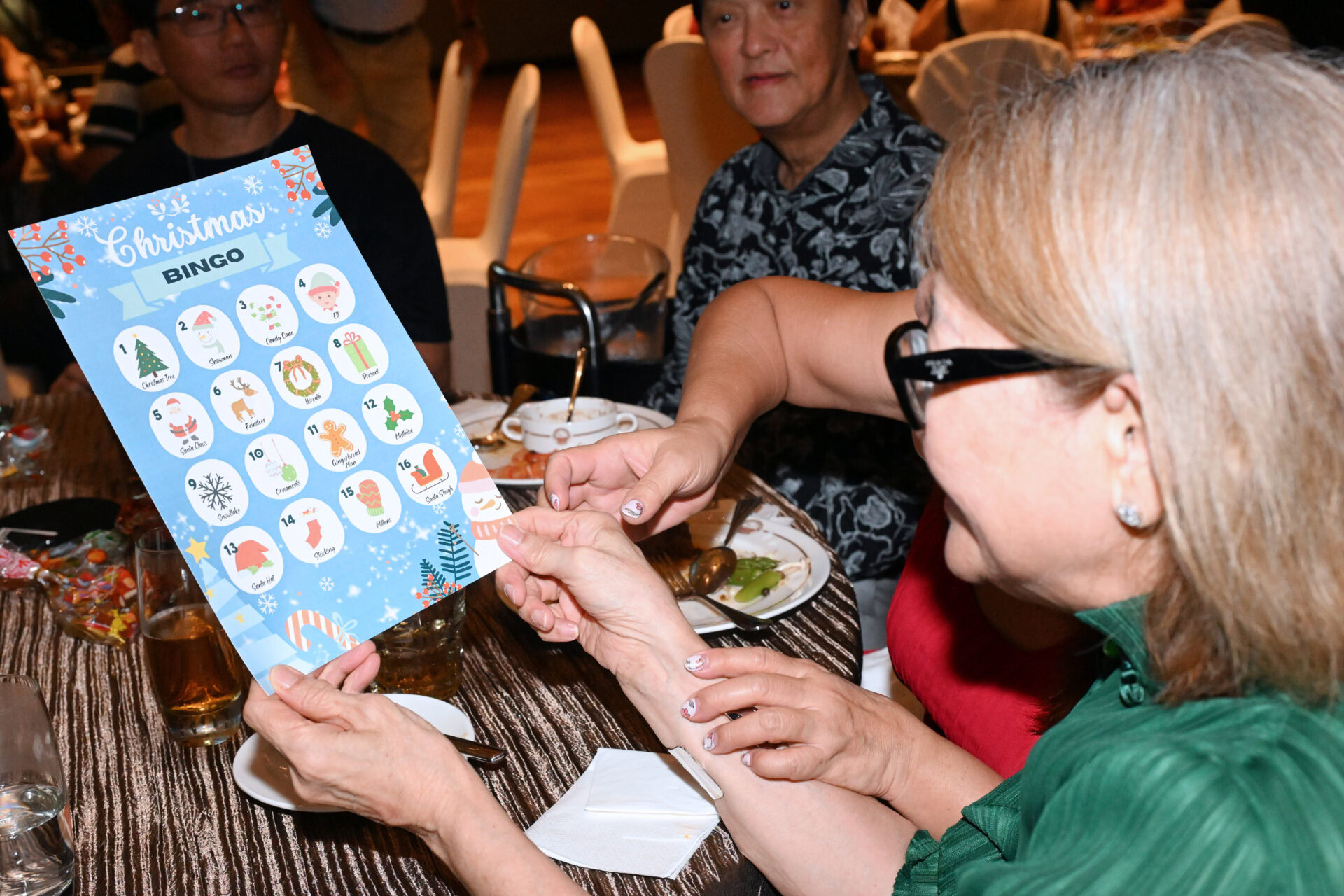 The ever charismatic and energetic emcee Ross Sarpani put the dots together with his easy-going manners and his game segment Christmas Bingo brought about a touch of twist that eventually saw all tables each winning a bottle of wine.